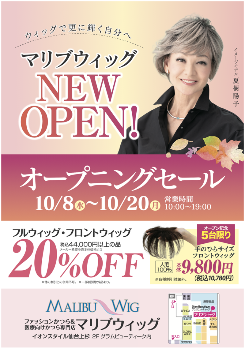 マリブウィッグ イオンスタイル仙台上杉店が2025/10/1(水)にオープンいたします!
